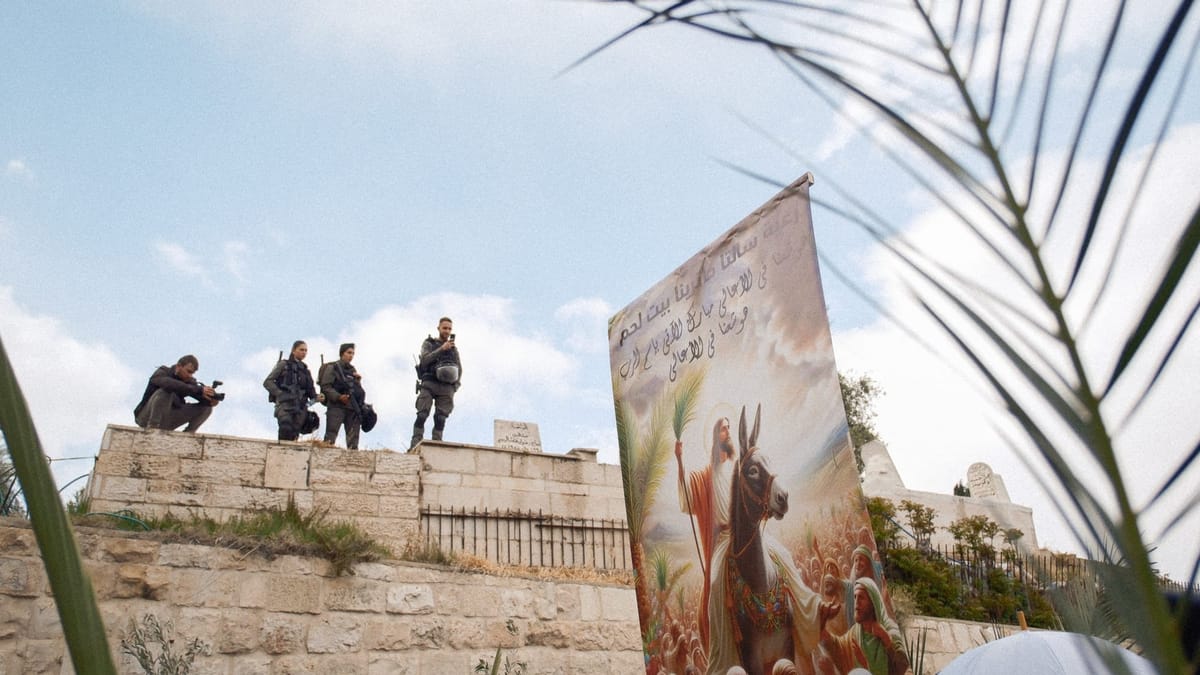 As I mentioned in my Palm Sunday post, during Holy Week last year, I was in Palestine — the most violent time of the year for Palestinian Christians. Easter was spent watching Palestinan Chrsitians being blocked from attending Easter services, watching a teenager be arrested for chanting, and witnessing a senior citizen being thrown over a barrier. This was on top of the constant presence of Israeli military and police, not there to de-escalate, but to provoke.