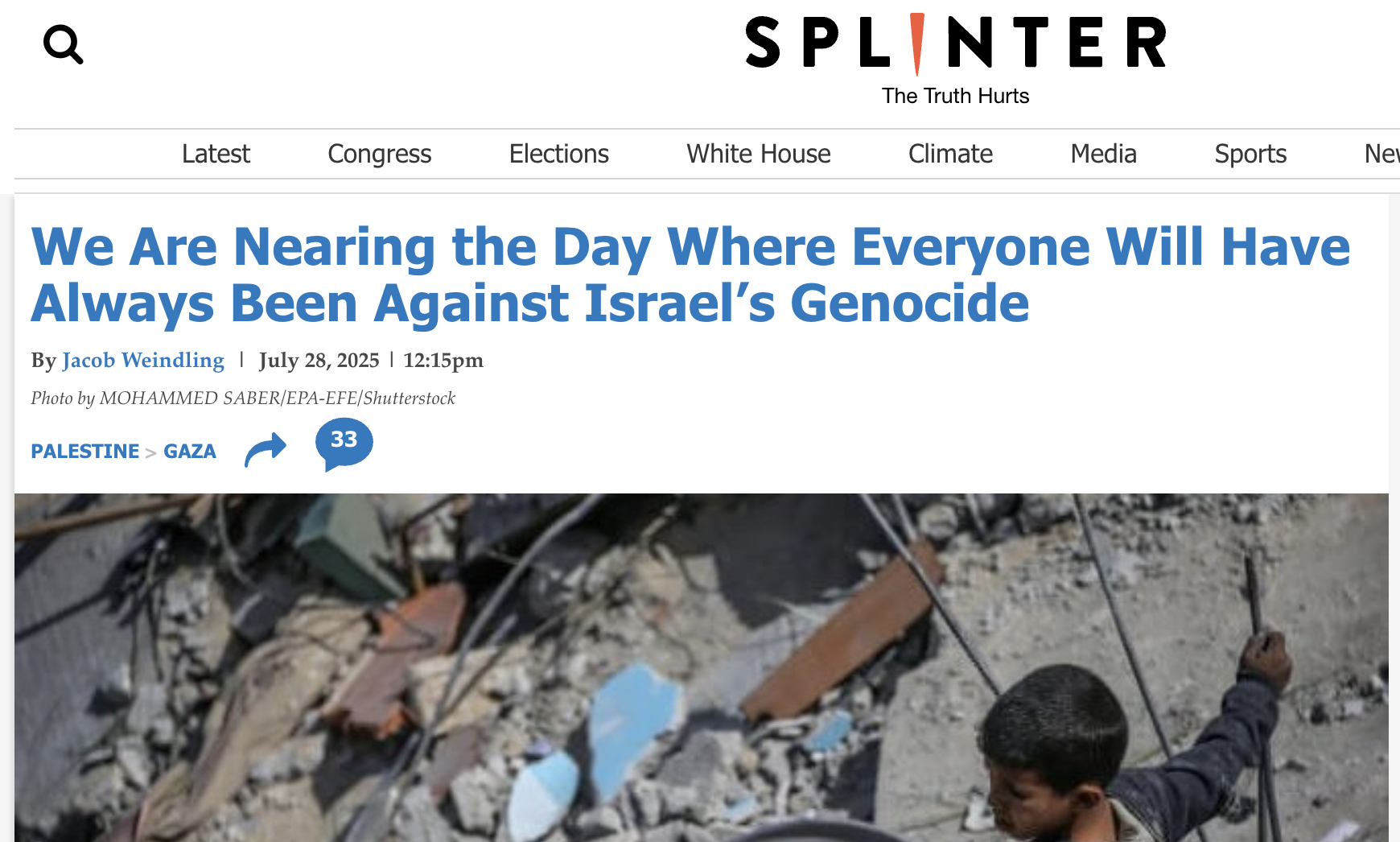FOUR/Gaza: from Splinter, We Are Nearing the Day Where Everyone Will Have Always Been Against Israelâs Genocide.